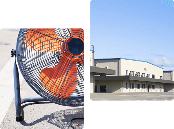 屋根用スプリンクラーやシーリングファンなどの大型扇風機、