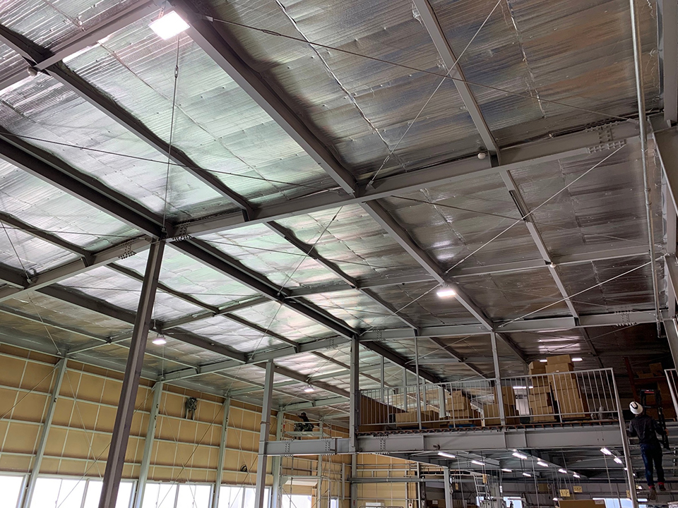 工場の屋根や壁に使用することで、太陽から発生する熱だけでなく、工場内の機械から発生する「輻射熱」も防ぐことができます。