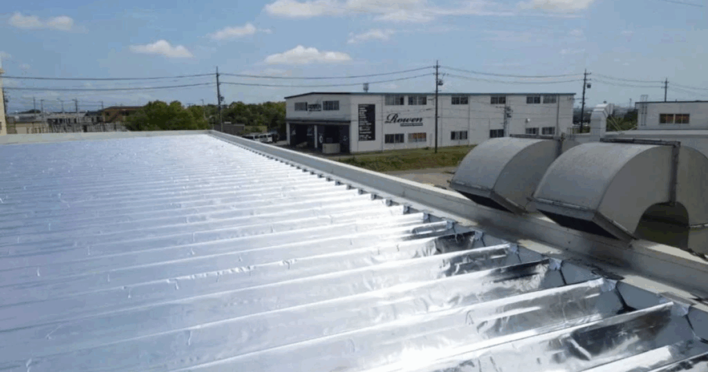 遮熱シートとは、輻射熱を反射する金属製アルミシートを指します。遮熱シートを屋根に施工することで、暑さの原因となる輻射熱を遮断し、室温の上昇を抑えます。