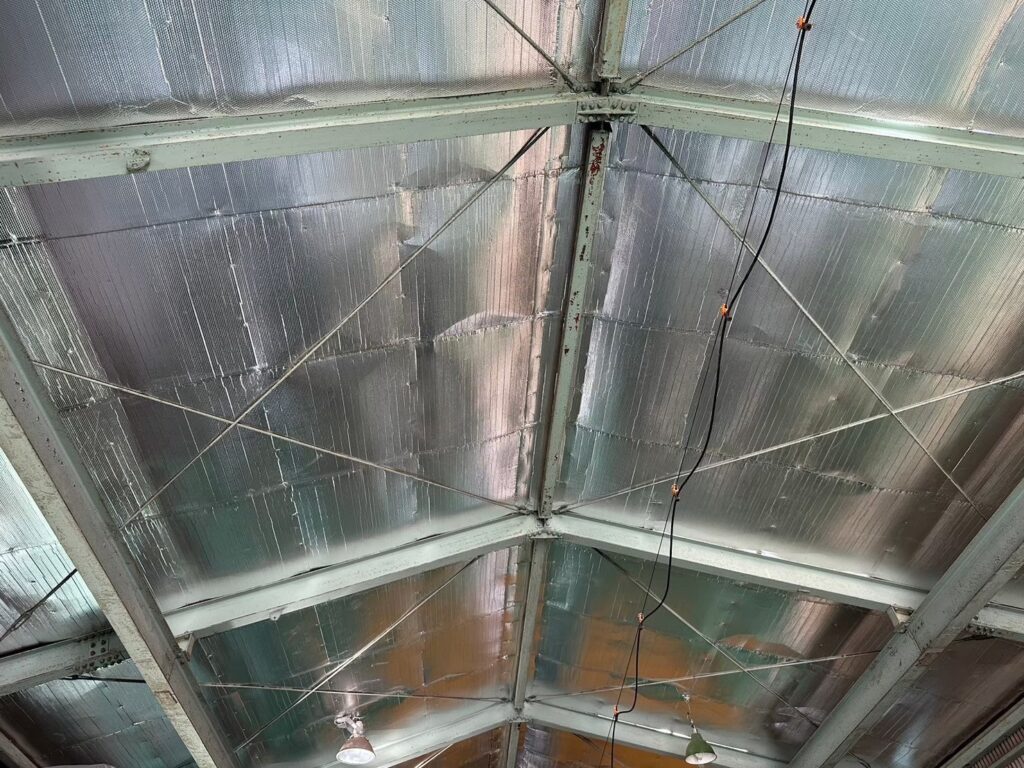 工場は、太陽の輻射熱を受けやすい金属製の折板屋根を採用しているケースが多く、夏は日射の影響で室内温度が上昇します。こうした暑さを軽減する方法のひとつが、屋根へ遮熱シートを施工する方法です。