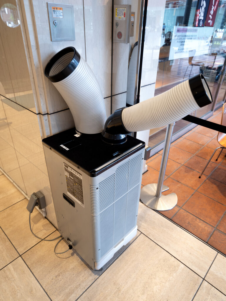 移動型スポットクーラーは冷気と共に排熱が出ることが難点ですが、延長ダクトを使用して排熱を排気口に導いたり室外に排出するなどの工夫が必要です。