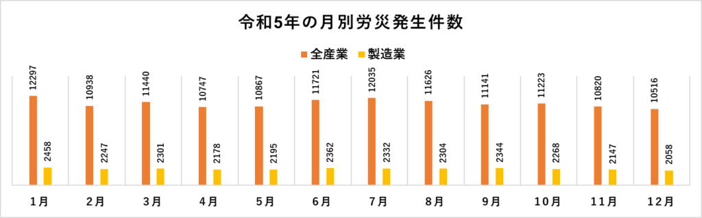 厚生労働省の労働災害発生状況のデータを参照すると、過去のデータにおいても1月に労災発生件数が増加する傾向が見られます。