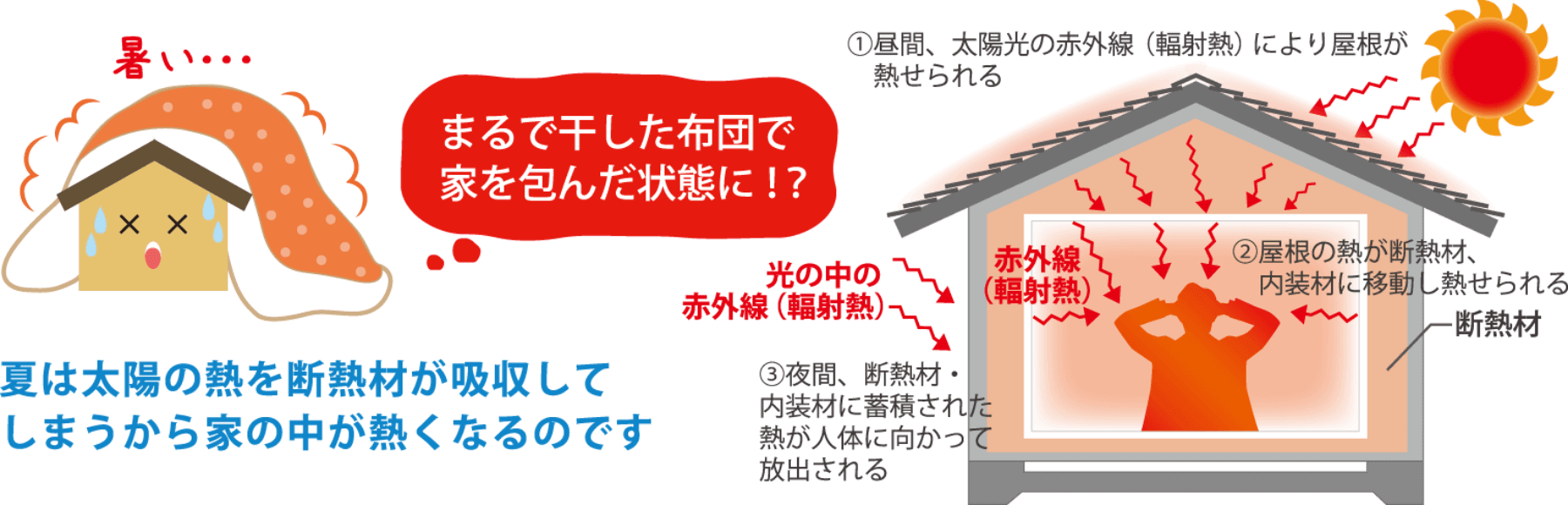 • 断熱材がしっかりと施工されているのに冷房を使わないと部屋の中が暑くて眠れない