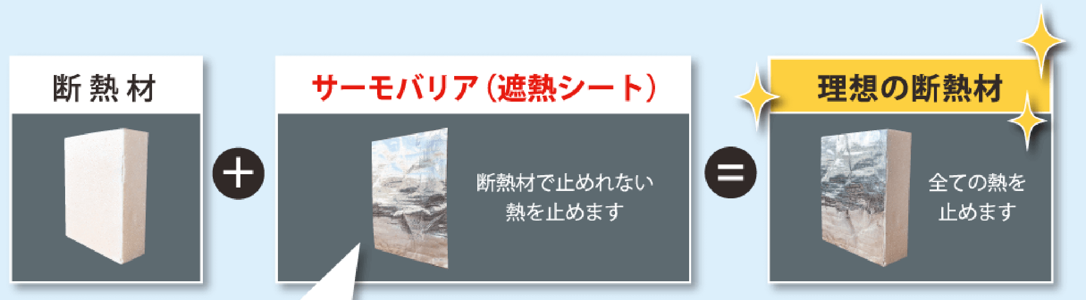 断熱材にプラス数mmの厚さのサーモバリアを使用することで住宅の断熱性能が大きく改善されます。