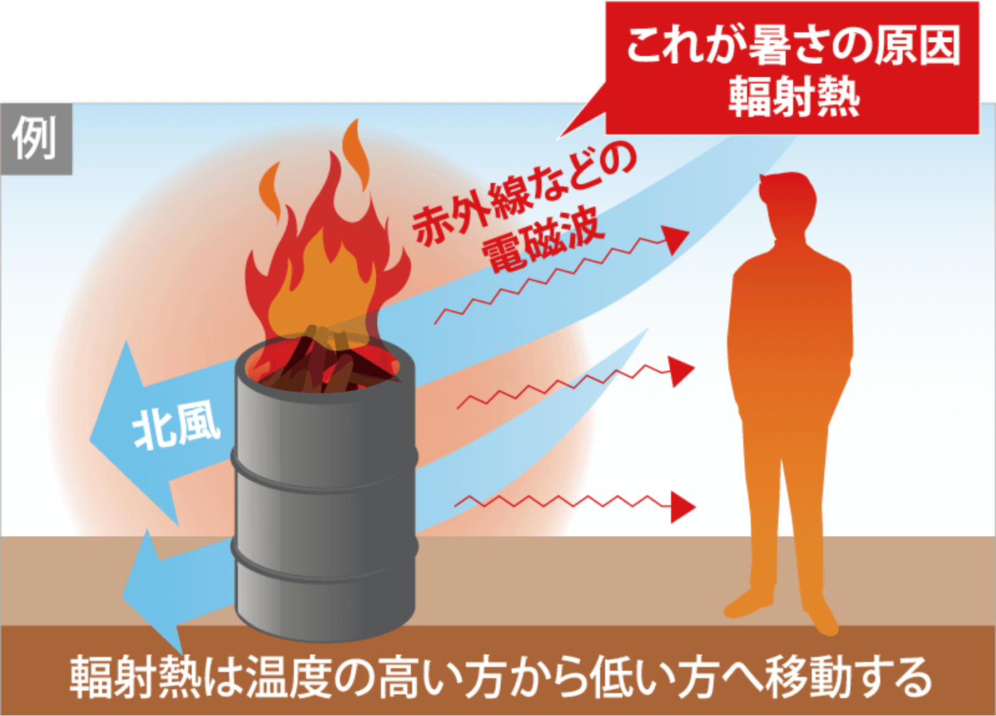 1つ目は、太陽から発生する輻射熱(ふくしゃねつ)が工場の屋根を温めるためです。