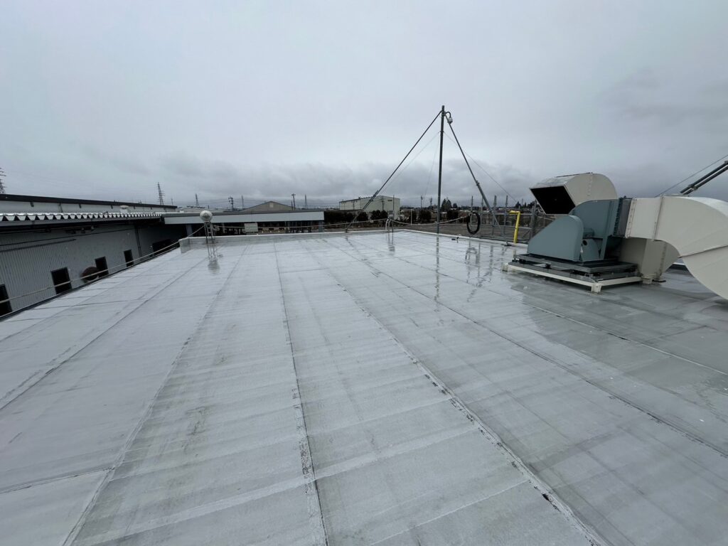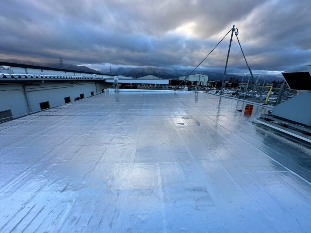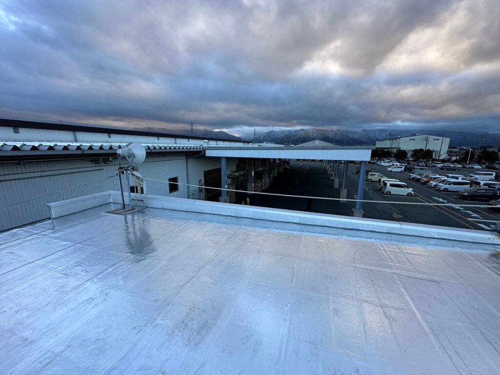 | 施工内容 | 施工物件名 : パナソニックオートモーティブシステムズ株式会社 松本工場様 建物の用途:コンプレッサー室の屋上屋根 施工現場:長野県松本市 施工商品:トップ工法 施工面積:181㎡ 施工時期:2024年2月下旬 施工期間:5日間 【導入理由】 全社的に省エネ及びCO2排出量削減に取り組む中でサーモバリアトップ工法導入を検討。コンプレッサー室は夏場になると40℃を超えてしまい、異常警報が鳴っていた。サーモバリアを工場棟に続いて、コンプレッサー室にも採用。 【お客様の感想】 コンプレッサー室は夏場になると例年40℃にまで達してしまう日があったが、サーモバリアトップ工法を施工した後は夏場でも30℃前後を推移し、異常警報が鳴らなかった。 サーモバリアの貢献度が大きいとのお言葉をいただきました。 |