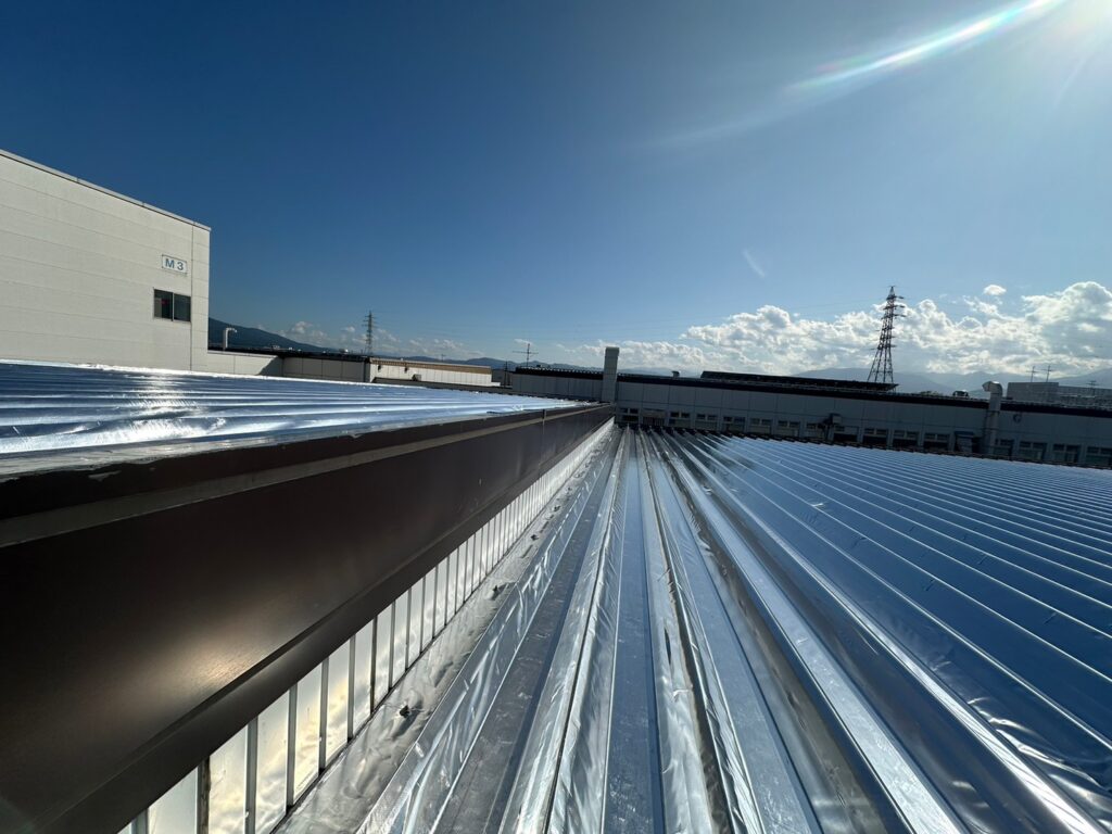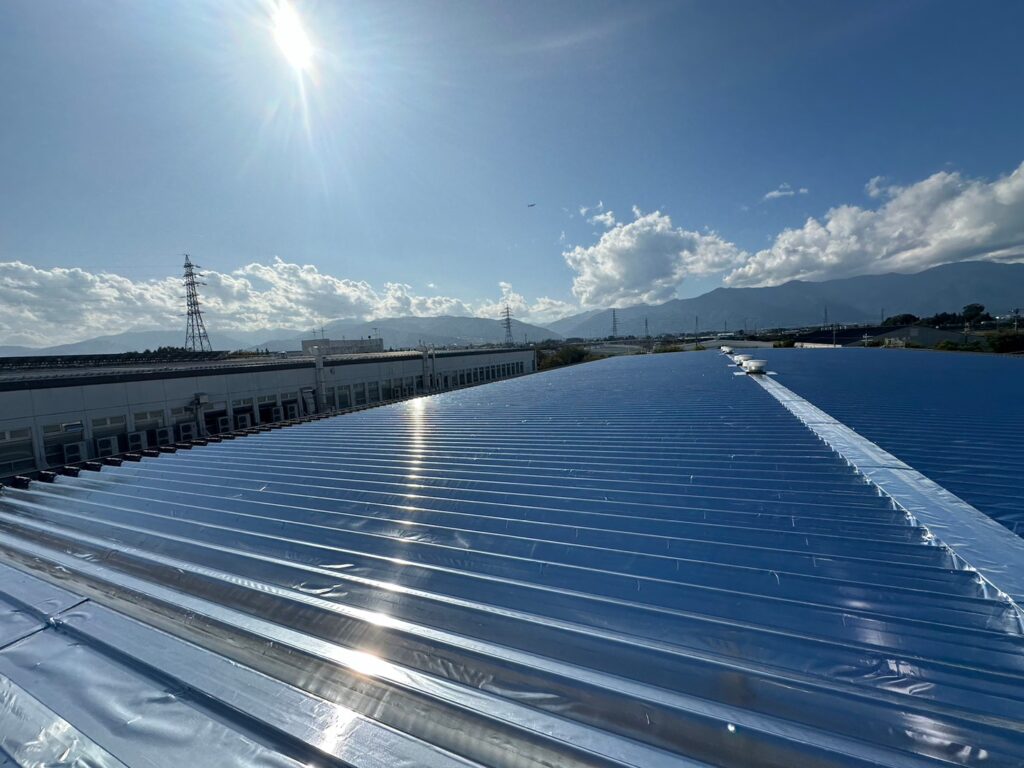 | 施工内容 | 施工物件名 : パナソニック オートモーティブシステムズ株式会社 松本工場様 建物の用途:車載製品の製造工場(ディスプレイ・オーディオ等)の4棟及び4棟風防室 施工現場:長野県松本市 施工商品:スカイ工法 施工面積:6,065㎡ 施工時期:2023年9月~2023年10月 施工期間:30日 【導入理由】 全社的に省エネ及びCO2排出量削減に取り組む中でサーモバリアスカイ工法導入を検討。シミュレーションでは高い削減効果が見られた。施工前には従業員からも"暑い"の声があった。 【お客様の感想】 サーモバリアスカイ工法を行った直後から、未施工箇所と施工箇所を比較して涼しさを感じた。施工前年の夏場は空調18℃設定で工場内の温度が26℃ほどあったのが、施工翌年の夏場は22℃まで低下した。 例年では7月になると従業員から"暑い"の声が聞こえてきたが、今年の夏は"暑い"の声が聞こえてこなかった。スポット的に設置していた扇風機も数十台設置しなかった。 夏季だけでなく、冬場の暖房節電、作業環境(寒さ対策)も改善されています。夏場は熱中症予防にもなっています。CO2排出量削減は当然ですが、作業環境改善には効果が大きいです。 今後も省エネ、CO₂排出量削減に向けてサーモバリアの導入を検討していくとのお声をいただきました。 |